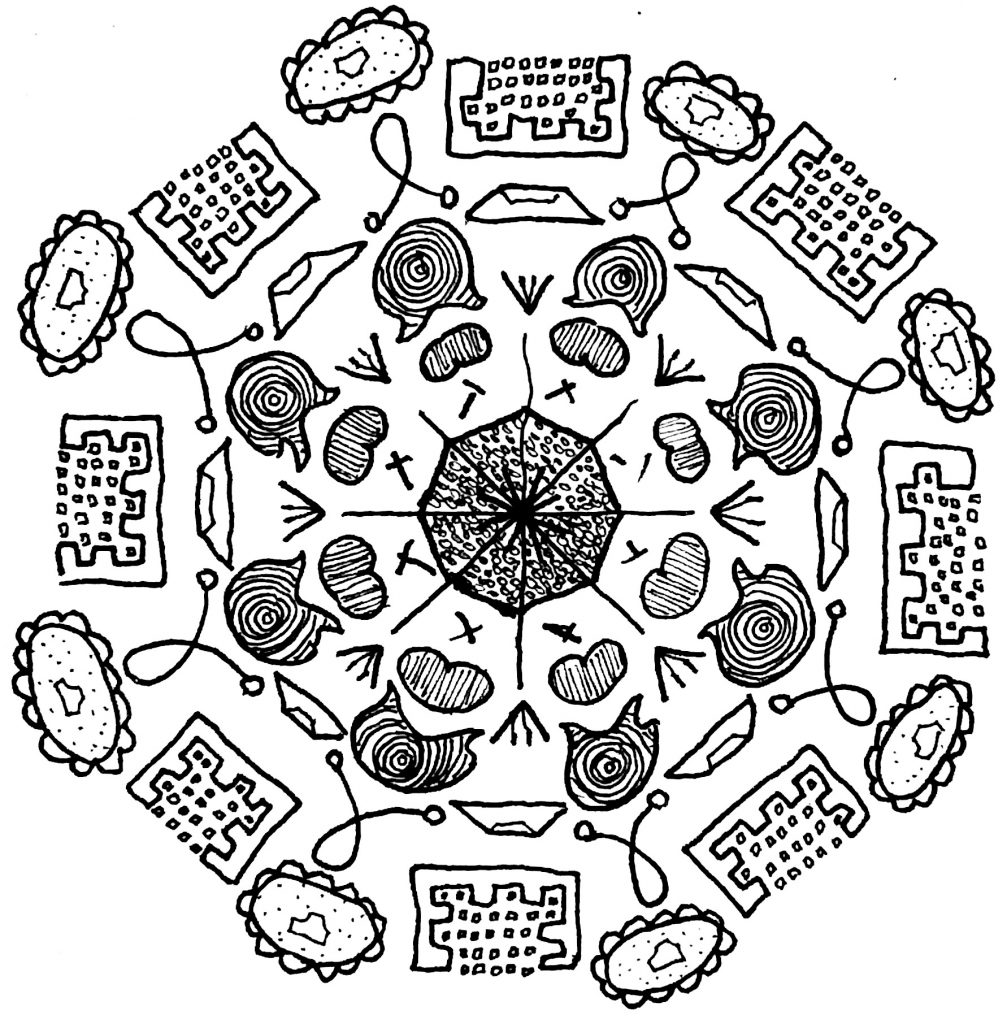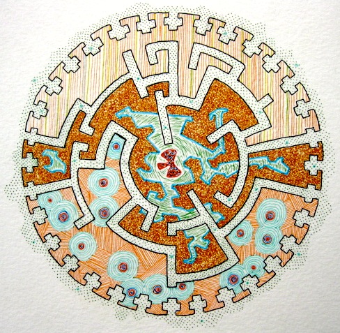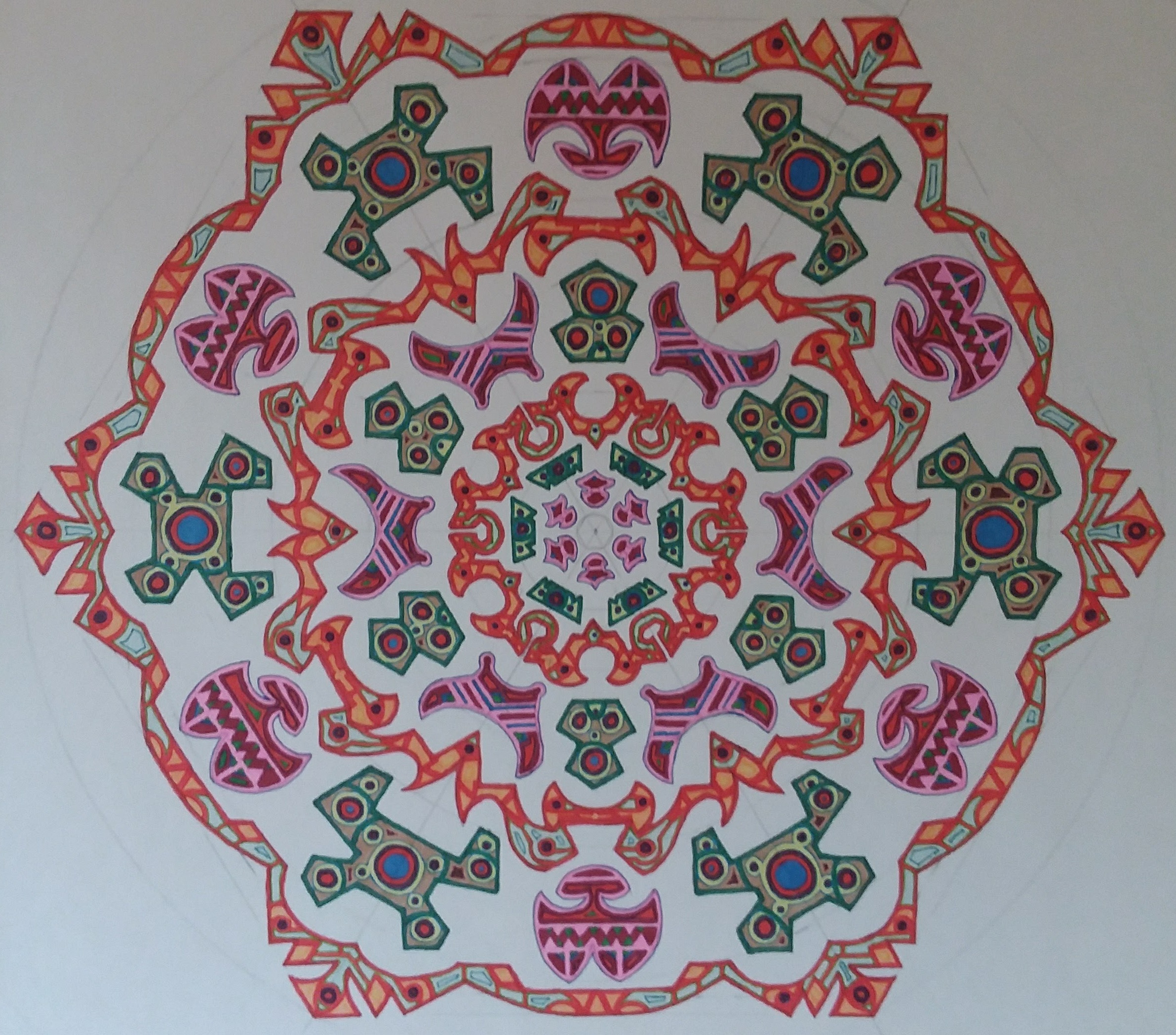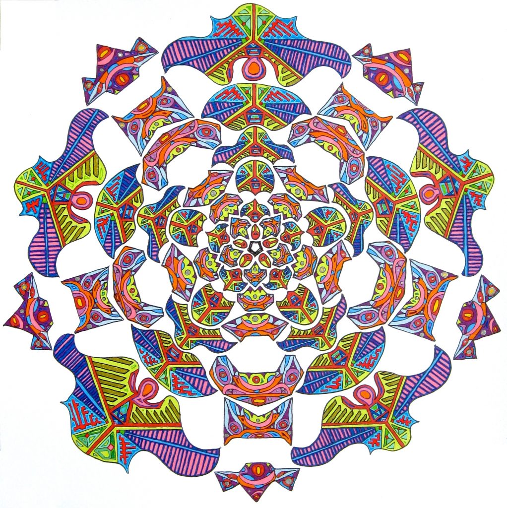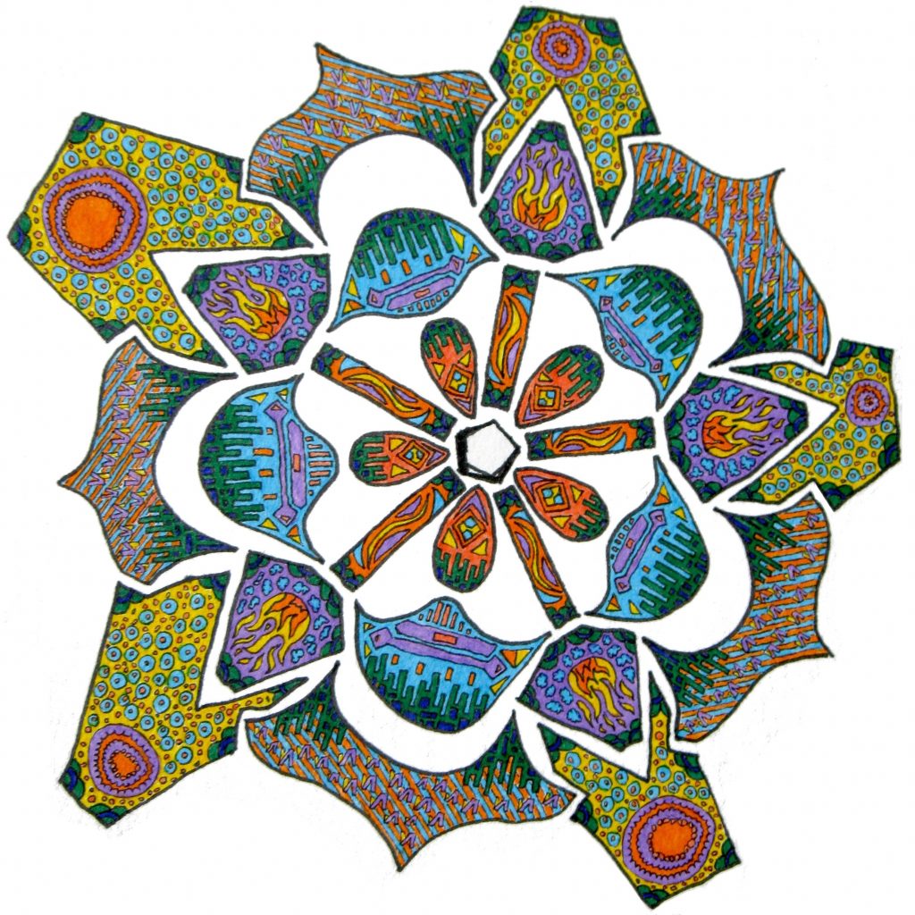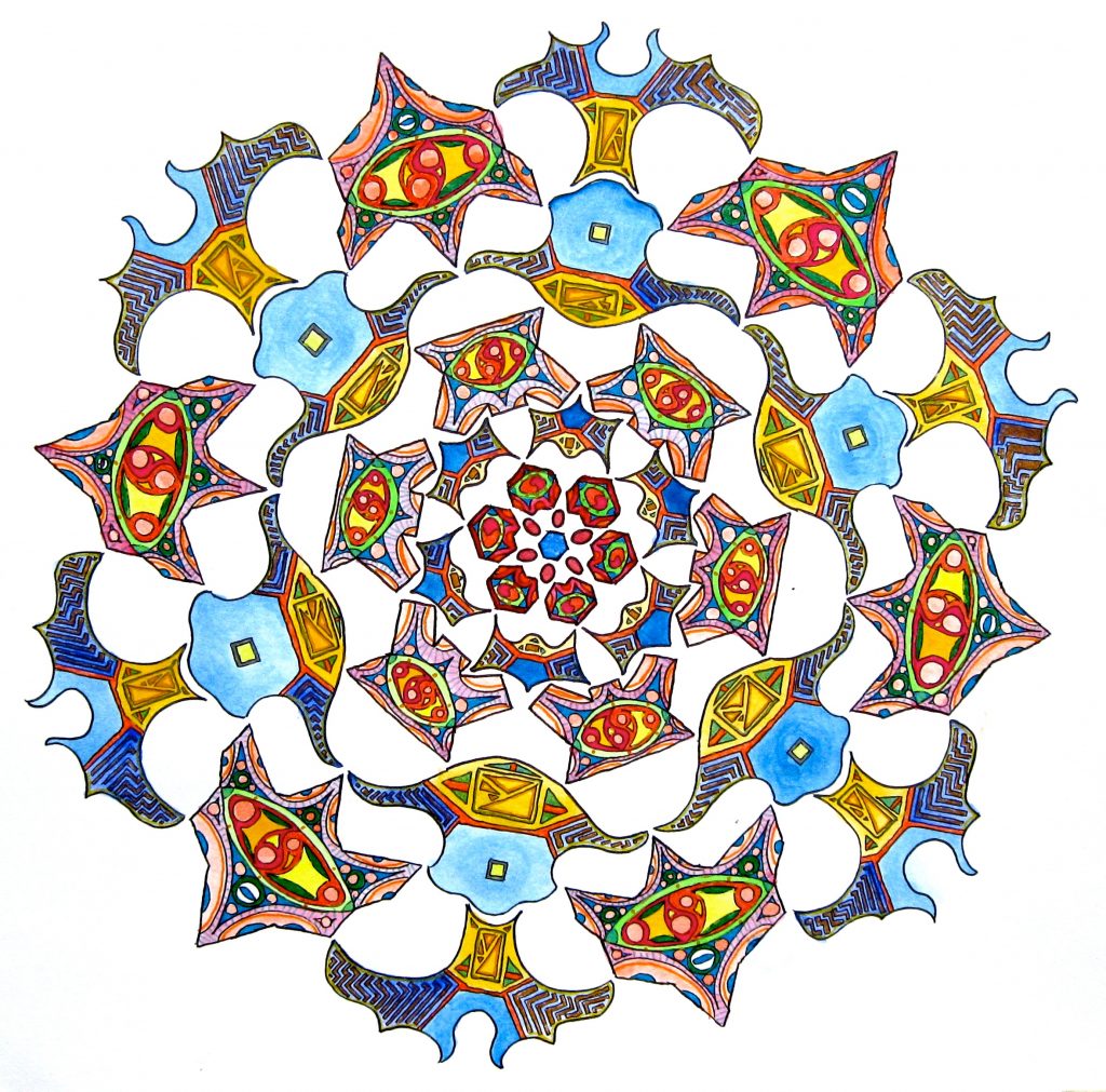 The mandala is an exploration of empty space. It grows concentrically and requires endless escalation of detail and richness. The further you go, the more you are required to give.