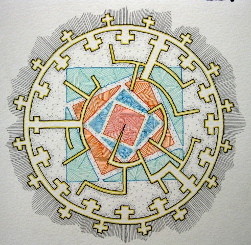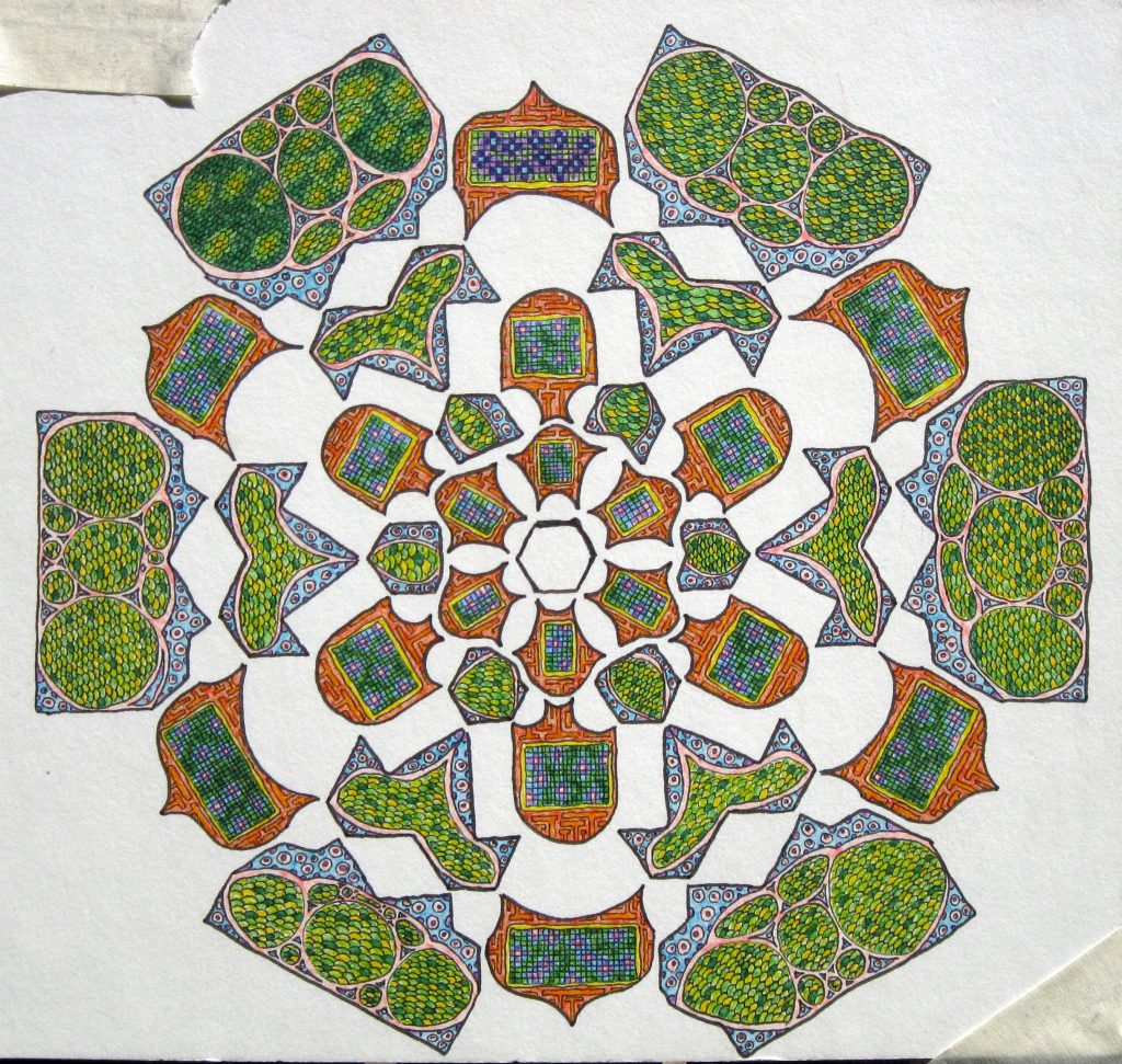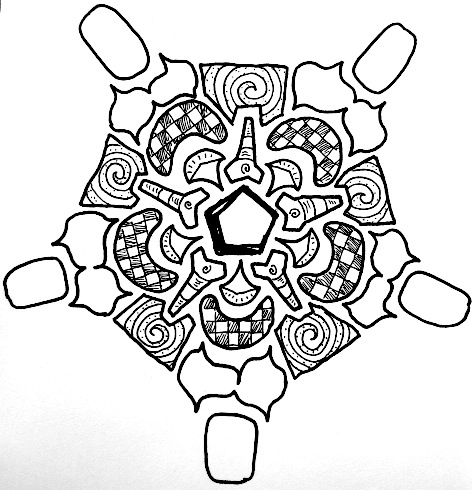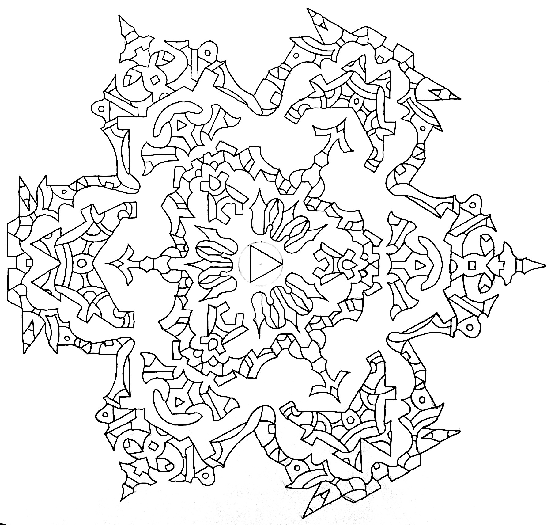 I needed to come up with a scheme to incorporate my vocabulary into something larger and more meaningful. I couldn’t handle the daunting task of filling an entire page. I couldn’t determine my purpose, so I expanded along radial axes of symmetry.