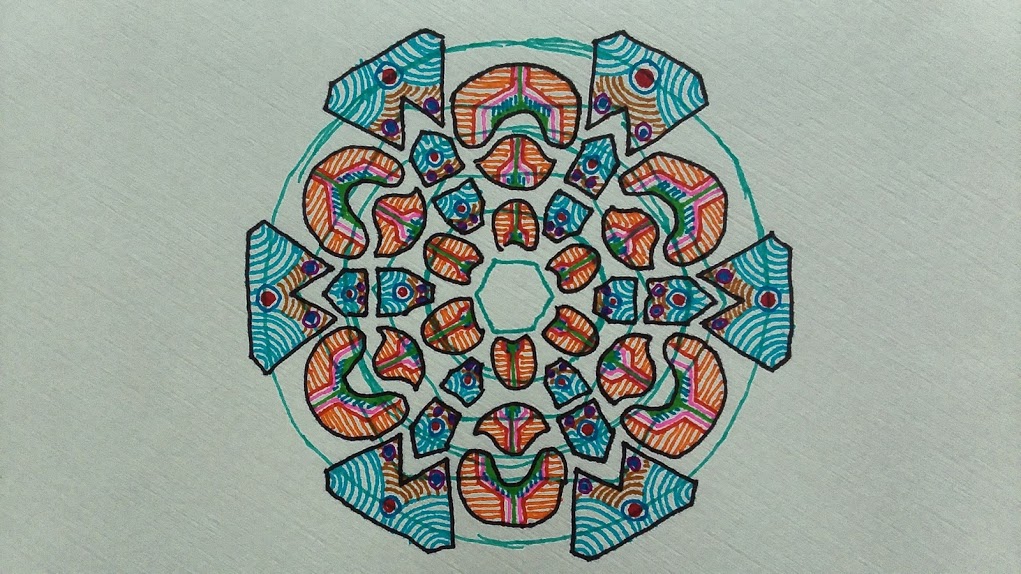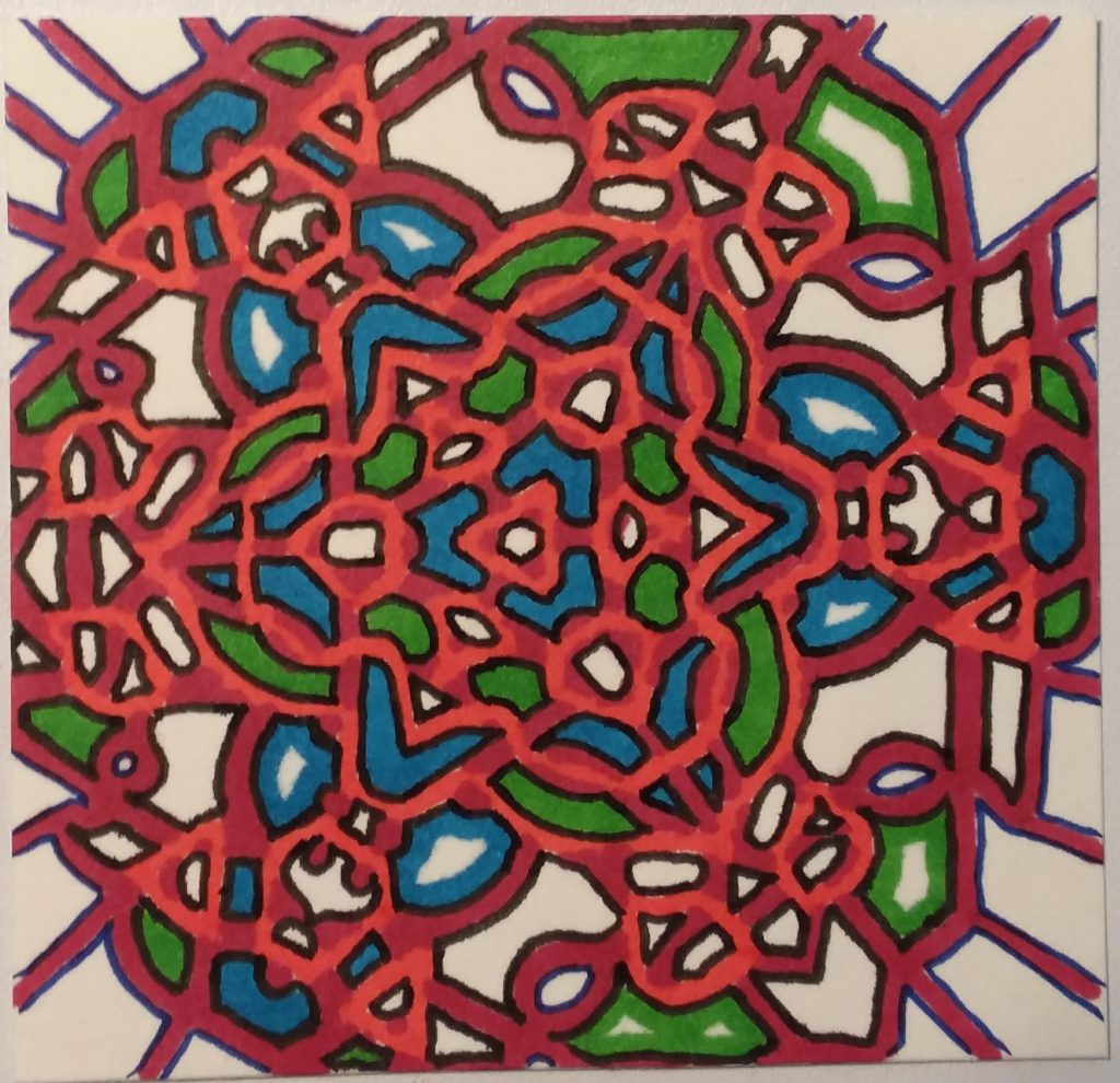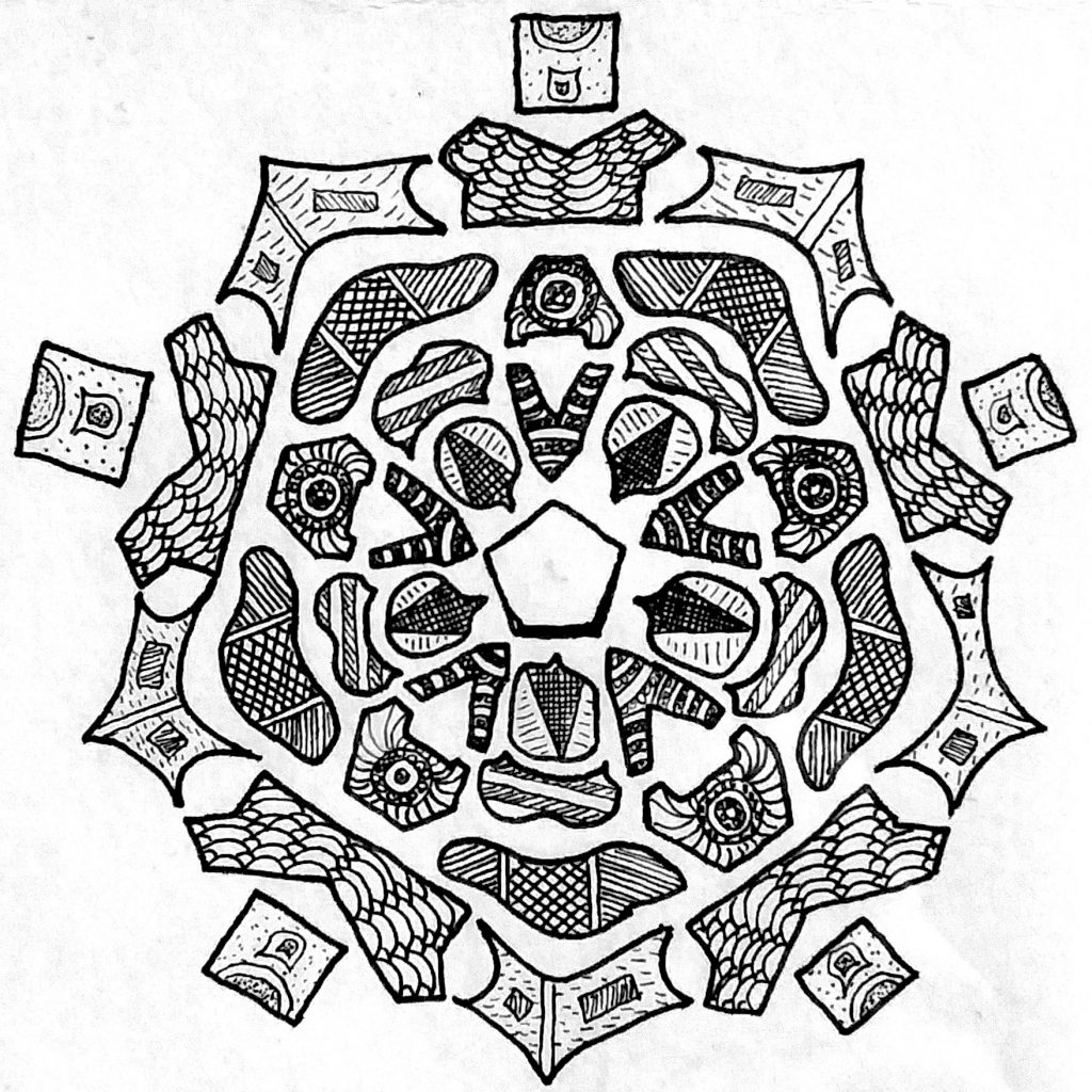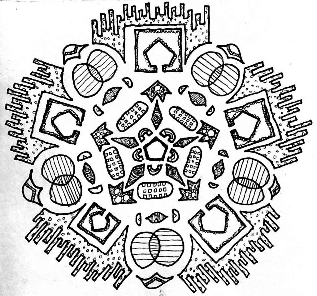 I needed to come up with a scheme to incorporate my vocabulary into something larger and more meaningful. I couldn’t handle the daunting task of filling an entire page. I couldn’t determine my purpose, so I expanded along radial axes of symmetry.