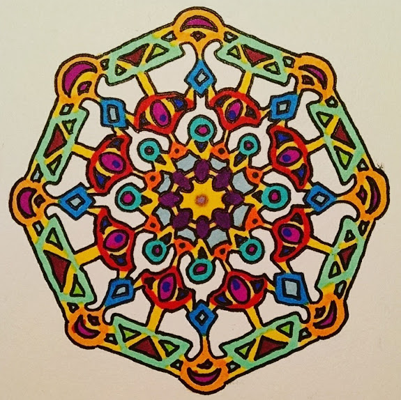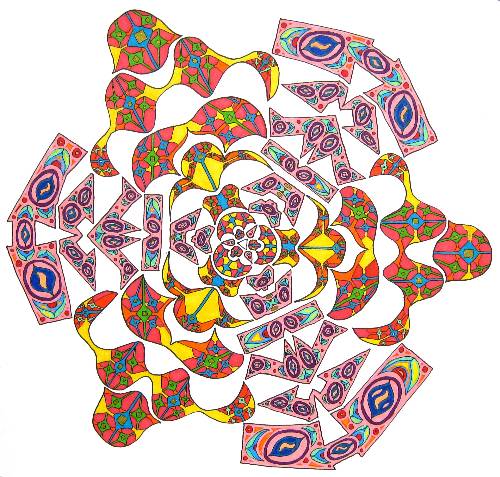 It is important to remember what you started with. How many lines of symmetry did you give yourself? What was the first series of shapes that danced around the center? How does an object evolve as it moves from the origin and gains a separate identity? Does the furthered idea receive more recognition and respect than the simplified and essential set of instructions that preceded it?
